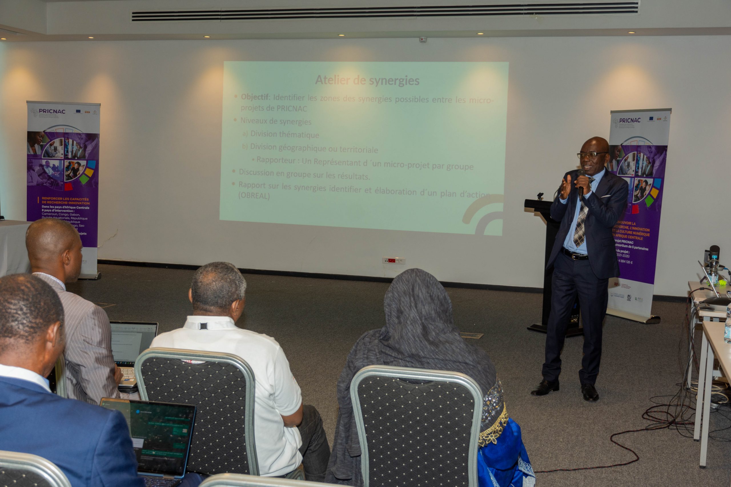 Le coordonnateur de PRICNAC, Jean Calvin Tjombe, a salué la qualité des travaux qui permettront aux actions des micro-projets d’être durables et pérennes. De son côté, la représentante du Ministre de la Recherche Scientifique et de l’Innovation (MINRESI) du Cameroun, Dr Amina Djouldé, a souligné le caractère novateur de PRICNAC en tant que « projet hautement compétitif à caractère fédérateur qui apporte les moyens financiers, logistiques, et l’expertise supplémentaire pour la mise à niveau de la recherche et de l’innovation, favorisant ainsi la mutualisation des centres de recherche en réseau ainsi que l’organisation de partenariats régionaux et internationaux indispensables ».
